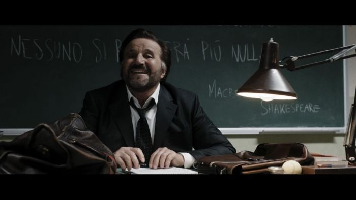 Come ogni film di derivazione teatrale che si rispetti, il grosso del plot riguarda la caratterizzazione dei personaggi, la loro descrizione, minuziosa ed analitica, le loro dinamiche comportamentali e relazioni reciproche. Anche se non conosciamo fino in fondo le biografie di ognuno di loro, ne sappiamo abbastanza per metterli tutti dentro una stanza e osservare cosa accade non appena le loro vita si incrociano e si sovrappongono. Alleanze, schermagli, battaglie, financo scontri all'ultimo sangue, accade di tutto, senza farsi mancare ambiguità e zone d'ombra naturalmente. Comedians ha un tono particolare, tutto suo, perché essendo un film su dei comici (e sulla comicità) parrebbe lecito aspettarsi le matte risate, mentre invece in Comedians si ride poco e perlopiù amaro. Ci sono battute e momenti dedicati alla comicità, ma è chiaro che quelle parentesi siano dei passaggi, delle transizioni, non la ragione sociale del film. Comedians non vuole far ridere ma semmai far pensare a cosa sia la comicità e cosa debba essere per ognuno di noi. Quelle di Barni e di Celli sono due scuole di pensiero, due filosofie di vita che fatalmente travalicano i confini della comicità e si estendono all'esistenza, al modo di intendere il nostro essere al mondo e di rapportarci con il prossimo. Si potrebbe persino parlare di politica, non sarebbe poi così difficile attribuire i due direttori d'orchestra a delle determinate aree politico-culturali di riferimento. Salvatores rende il gioco ancora più scoppiettante ed interessante scegliendo due campioni che incarnano i rispettivi mood anche fuori dal set. De Sica viene chiamato a difendere il "suo" cinema", così come Balasso raccoglie l'onere di perorare la causa di una comicità piuttosto affine a quella nella quale egli stesso crede. Tuttavia la materia è affrontata con maturità, ironia e rispetto reciproco; è evidente quanto Salvatores abbia usato i guanti di velluto, non proponendo tesi precostituite ma lasciando campo libero allo spettatore di riflettere, scegliere ed eventualmente schierarsi (anche se, va detto, non è poi così difficile intuire da quale parte del campo si posizionerebbe Salvatores in una simile disputa concettuale).