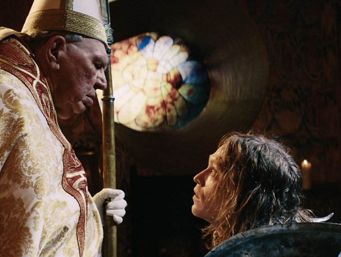 Laddove il Dracula di Coppola era una monumentale (e megalomane) opera glamour, che trasformava Dracula in Oscar Wilde, quella di Besson è più prosaica e concreta, senza per questo perdere l'afflato visionario, che sposta il fuoco sul romanticismo della storia d'amore tra Vlad (Caleb Landry Jones) e Elizabeta (Zoë Bleu). Quella di Dracula è una storia d'amore che attraversa i secoli, Besson non è interessatissimo all'aspetto orrorifico, che non può naturalmente tralasciare ma che non è l'obbiettivo, il fine ultimo, semmai solo un colore del racconto. Ciò nonostante, quello che Besson mette in scena è magnifico. Ho sempre trovato un po' posticcio l'uso della computer grafica alla quale Besson ha fatto generosamente ricorso in carriera e qui il pericolo di strafare (o mal fare) era fortissimo, invece lo spettacolo sta in piedi; ad eccezione dei servitori troll di Dracula (che poi scopriremo essere ben altro), oggettivamente troppo in là, almeno per il sottoscritto. Besson avrebbe perlomeno dovuto trovare uno stratagemma narrativo per suggerirne la presenza facendoli vedere il meno possibile. Altre due le cose che non ho particolarmente apprezzato, il finale (sostanzialmente da quando le milizie assaltano il castello, troppa azione e una rivoluzione esistenziale di Dracula troppo repentina) e il personaggio di Christoph Waltz, cucito più su Sherlock Holmes che su Van Helsing. Waltz gigioneggia davvero esageratamente, cosa che gli capita spesso. È fuori tono rispetto al racconto, di fatto pare Hans Landa (Bastardi Senza Gloria) o il dott. King Schultz (Django Unchained), ovvero un personaggio di Tarantino, e mi viene il dubbio che Waltz più o meno faccia sempre quello, con minime variazioni di spartito. O magari è esattamente il motivo per il quale Besson lo ha scelto, chissà.