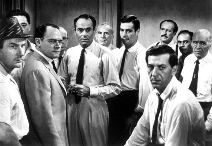 Esistono varie versioni di questo soggetto (di Reginald Rose), nel 1997 William Friedkin ne curò una omonima per la tv con un cast di tutto rispetto che comprendeva tra gli altri Jack Lemmon, James Gandolfini, George C. Scott; nel 2007 Nikita Mikhalkov gira 12, ma esistono anche adattamenti indiani (Ek Ruka Hua Faisia, 1986) e cinesi (12 Citizens, 2014), e svariate citazioni televisive (da Happy Days a I Simpson, da I Griffin a La Signora In Giallo, passando anche per Veronica Mars e Ai Confini Della Realtà). Il film di Sidney Lumet del 1957 viene usualmente considerato il primo sebbene anch'esso in effetti sia un riadattamento del soggetto originariamente scritto per la televisione e andato in onda per la CBS nel 1954. 96 minuti dei quali 93 girati nello stesso ambiente, quattro pareti, un tavolo, un ventilatore e 12 sedie, la stanza nella quale la giuria popolare di 12 cittadini deve decidere se mandare sulla sedia elettrica un ragazzo diciottenne accusato di parricidio. Alle spalle di quel drappello di uomini c'è il sistema costituzionale americano, 12 persone qualunque, che non si conoscono tra loro e che non hanno alcun rapporto diretto con l'imputato, chiamate per posta a rivestire il ruolo di giudici, scevri da interessi personali e pregiudizi. O almeno così dovrebbe essere. Quello che appare chiaro sin da subito è che invece il pregiudizio non rimane affatto fuori da quella porta ma anzi si catapulta nella stanza con tutta l'arroganza e l'irruenza di cui è capace. E' il più caldo giorno d'estate, la permanenza coatta è insopportabile, ognuno ha il suo d'affare, chi deve mandare avanti la propria autofficina, chi ha i biglietti per la partita di baseball, chi il posto in ufficio che lo aspetta. Decidere dopotutto dovrebbe essere uno scherzo da niente, tutte le prove indiziarie e le due testimonianze principali condannano il ragazzo, pronunciarsi diventa una formalità. La prima votazione va 11 colpevolisti contro 1 innocentista (Henry Fonda). Deriso e mal sopportato inizialmente, l'uomo si incarica di costringere ad una reale discussione i suoi "antagonisti", chiedendo uno sforzo di analisi di ogni singolo dettaglio, particolare, prova che sia stata presentata nel processo.
