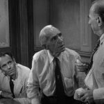 12 Uomini Arrabbiati (questo il titolo originale) è la storia di una battaglia in salita, di una vetta da scollinare con le soli armi della pazienza, della ragione e della determinazione. I pilastri su cui si fonda l'umanità di Henry Fonda (il giurato n. 8, che solo nell'ultima scena scopriremo chiamarsi Davis) sono l'etica, la morale, il rigore, la rettitudine. Quel giurato sente tutta la responsabilità che è chiamato a rivestire con il proprio ruolo di boia o salvatore ma, quale che sarà l'abito che indosserà, dovrà farlo nella piena convinzione, oltre ogni ragionevole dubbio, come recita un caposaldo del diritto americano. Non tutti i suoi compagni di viaggio la pensano così e Fonda dovrà lottare contro la superficialità di giudizio (nella migliore delle ipotesi) o persino contro il razzismo, il classismo, il qualunquismo, ma anche contro il più temibile degli avversari, la vendetta personale. L'impianto teatrale del film tradisce la stringente ed inderogabile necessità di affidarsi a 12 attori perfetti, impeccabili, eccellenti, perché anche un solo passo falso, un volto non convincente, una caratterizzazione psicologica debole, avrebbe fatto saltare l'intera catena, depotenziando il risultato finale. Lumet (che tra l'altro qui è al suo esordio) è magnifico nel dare un taglio quasi thriller al dramma, in totale assenza di movimento, cambi di scena o espedienti di sorta capaci di infondere dinamismo. Intendiamoci, in realtà ne usa, sapientemente, ma si tratta di micro movimenti, espressioni, inquadrature, "trucchi" insomma che aiutino il regista a rendere il meno pesante possibile la costrizione che i paletti narrativi impongono. Ad esempio inizialmente la macchina da presa si posiziona al di sopra dello sguardo dei personaggi, con lenti grandangolari, a sottolineare la distanza (fisica e metaforica) tra i vari giurati. Passo passo le inquadrature si restringono, si focalizzano, fino a che sul finale abbondano i primi piani, sparisce il grandangolo, la profondità di campo è quasi azzerata. La tensione sale e questo deve risultare tanto dalla situazione (il contenuto) quanto dal modo in cui questa viene raccontata (la forma).